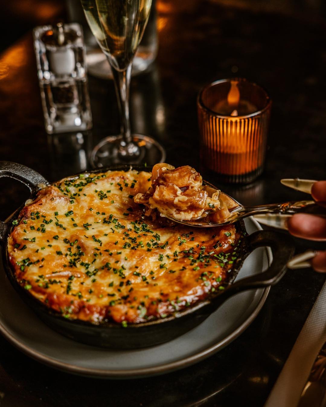 L'incontournable soupe à l'oignon gratinée au cantal. ✨ Un classique réconfortant, tout simplement. Entre son bouillon savoureux et sa croûte de fromage fondante, c'est la promesse d'un moment de pur réconfort. La recette idéale pour se réchauffer avec authenticité au cœur du 5e. 😊